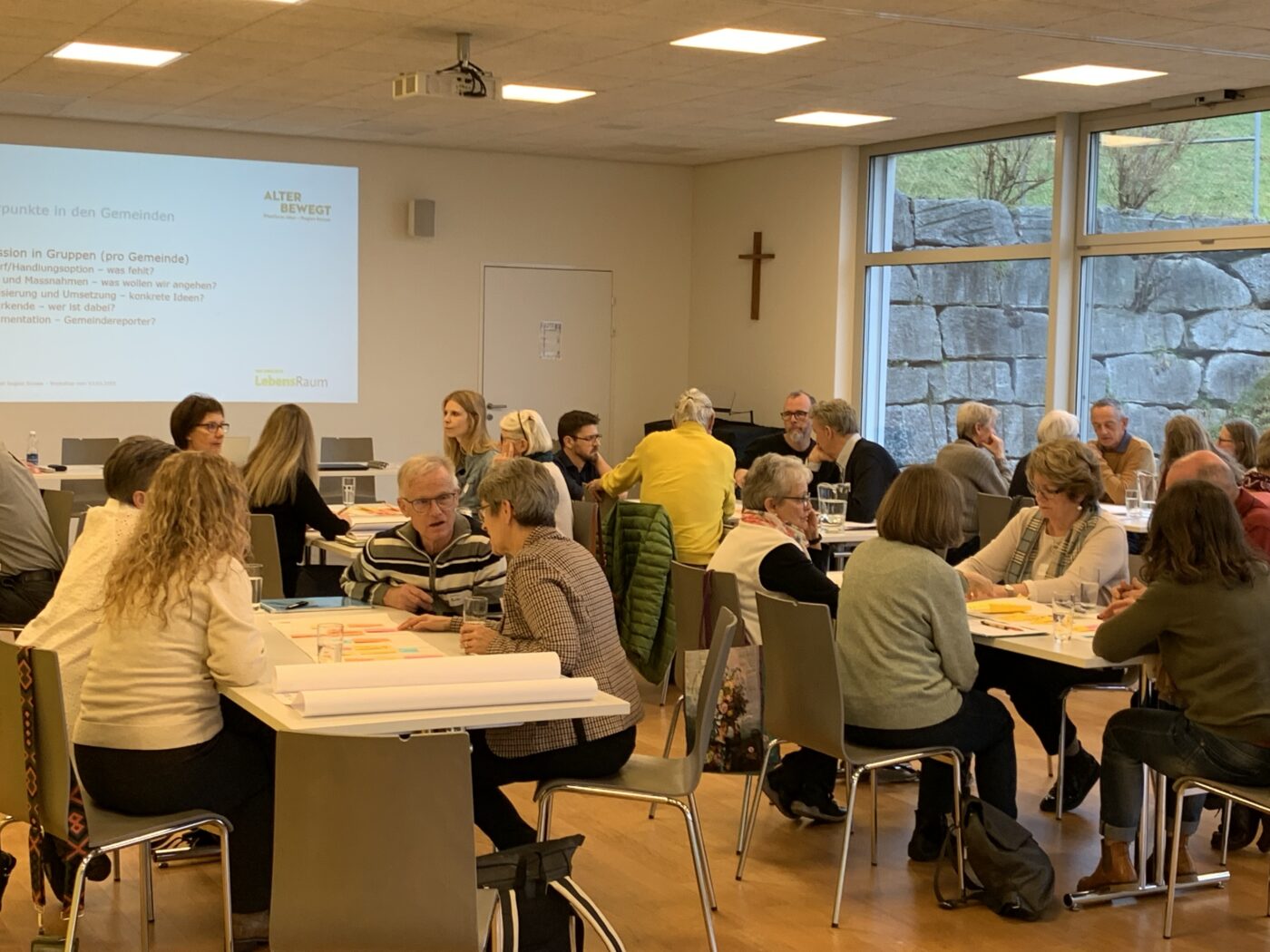 Daniela Meyer hat ihre Arbeit letzten Oktober aufgenommen. In den ersten Monaten hat sie Gespräche geführt mit den Akteuren in den sieben Gemeinden und die verschiedenen Angebote besucht. Dadurch konnte sie sich einen guten Überblick verschaffen. In ihrer Präsentation der Bestandesaufnahme stellte sie fest, dass es in den sieben Gemeinden bereits ein sehr grosses Angebot für Senior*innen gibt, insbesondere in den Bereichen Bewegung und Sport, Treffpunkte, Mittagstische, Gesundheitsversorgung. Dabei hat jede Gemeinde auch ihre Spezialitäten, wie einen Seniorenchor, einen Digi-Treff, einen Mittwochstreff mit Vorträgen, Indoor-Rudern, Tanzen oder Biken.