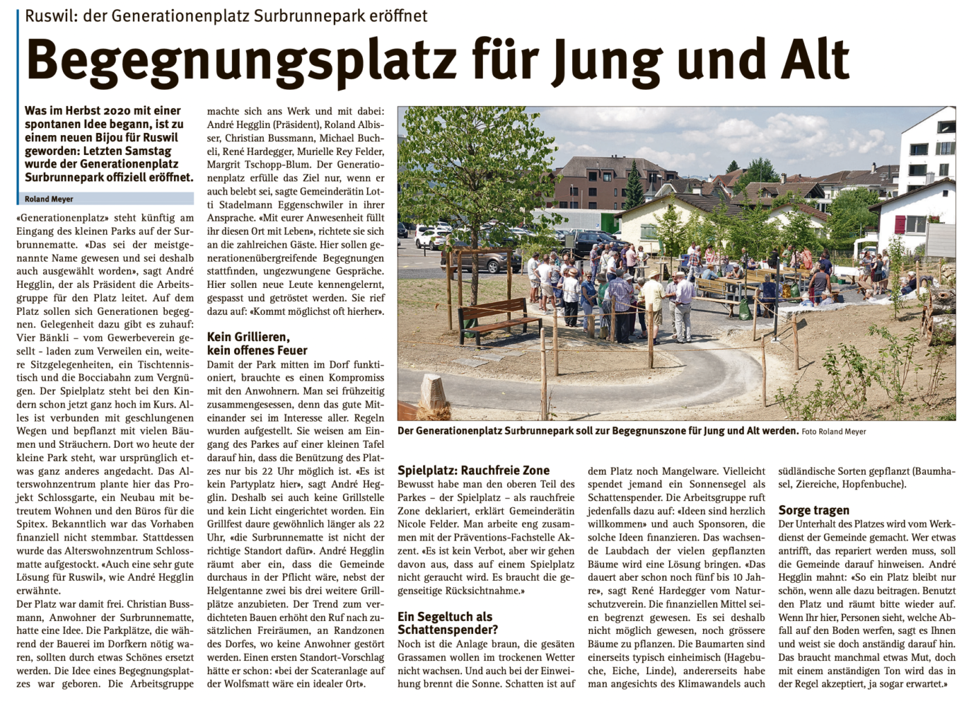Ganzer Artikel zum Generationenplatz Surbrunnepark: