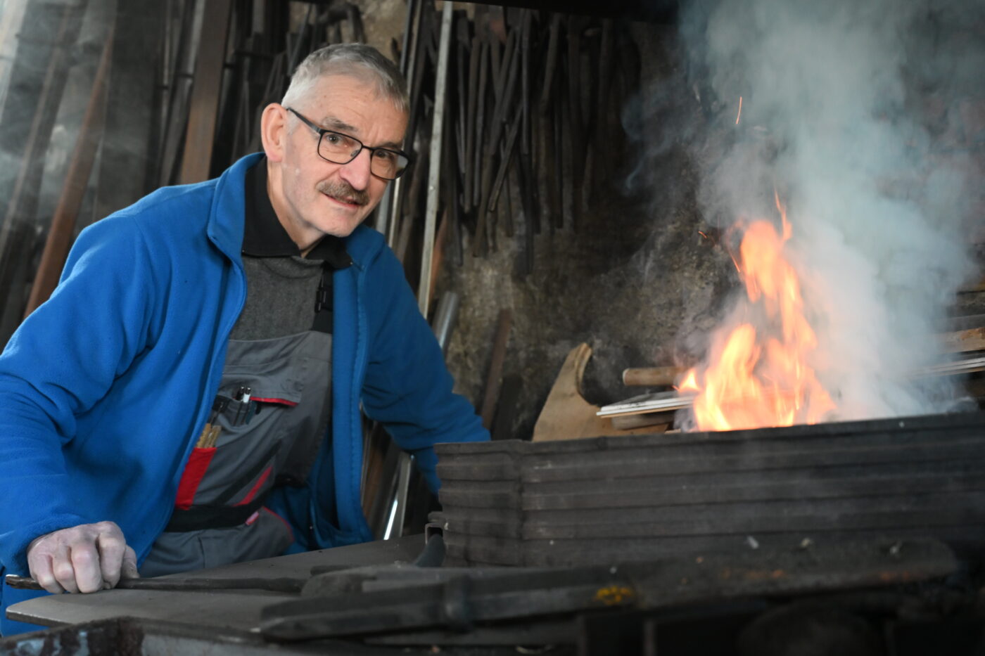 Die Büroarbeit liebte Josef Wanner nie besonders, doch er und Ehefrau Esther waren ein eingespieltes Team. Etwas wehmütig meinte Josef Wanner: «Dieses Jahr werde ich 70 Jahre alt und so habe ich entschieden, die Schmitte Ende Jahr zu schliessen. Die Schmiede ist mit dem Wohnhaus eng verbunden, so sind die Familien über Generationen aufgewachsen. Doch eine Nachfolge zu finden ist unmöglich, daher werden wir die Schmitte räumen.» Nach einer kurzen Pause meint er: «Ich weiss, dies wird keine leichte Aufgabe.» Unmittelbar unter der Stube zeigt Josef Wanner die Dorfschmiede, sein Reich. Der hohe dunkle Raum, alte und neuere Maschinen und Werkzeuge zeugen von einer eindrücklichen, jahrhundertalten Geschichte. In der Ecke befindet sich das Kernstück, eine Feuerstelle, die «Esse». Kurze Zeit später schaltet Josef Wanner den Blasbalg ein, und entzündet die Kohle und zeigt, wie früher im Takt des Federhammers und heute mit dem «Güdel-Lufthammer» mit roher Energie Stahl verformt wird. Schon präsentiert er stolz das geschmiedete Werk. Auch seine Worte: «Das Räumen der Schmitte wird keine leichte Aufgabe», klingen nach.