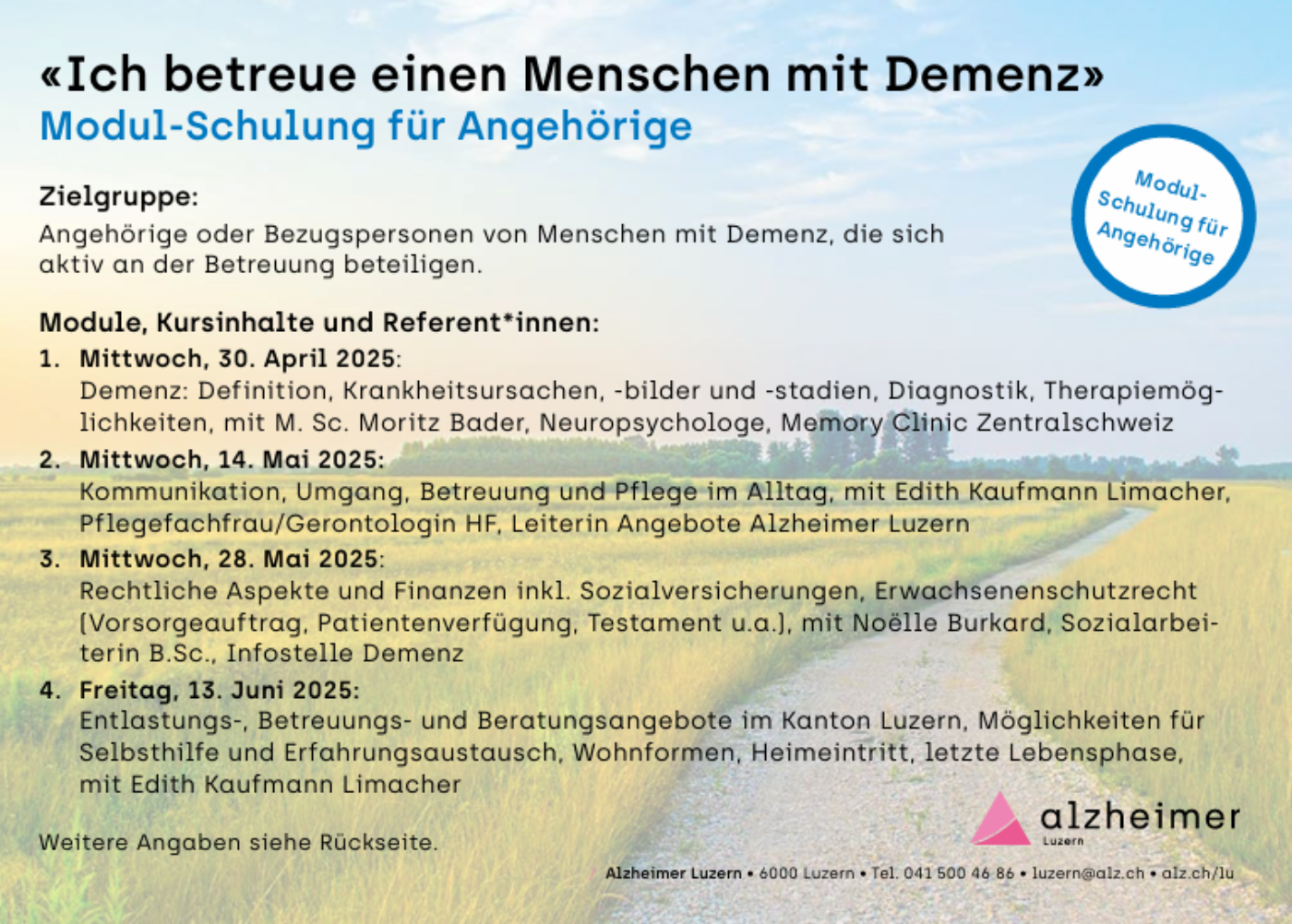 Anmeldung: bis 21. April 2025, unter Angabe der gewünschten Module