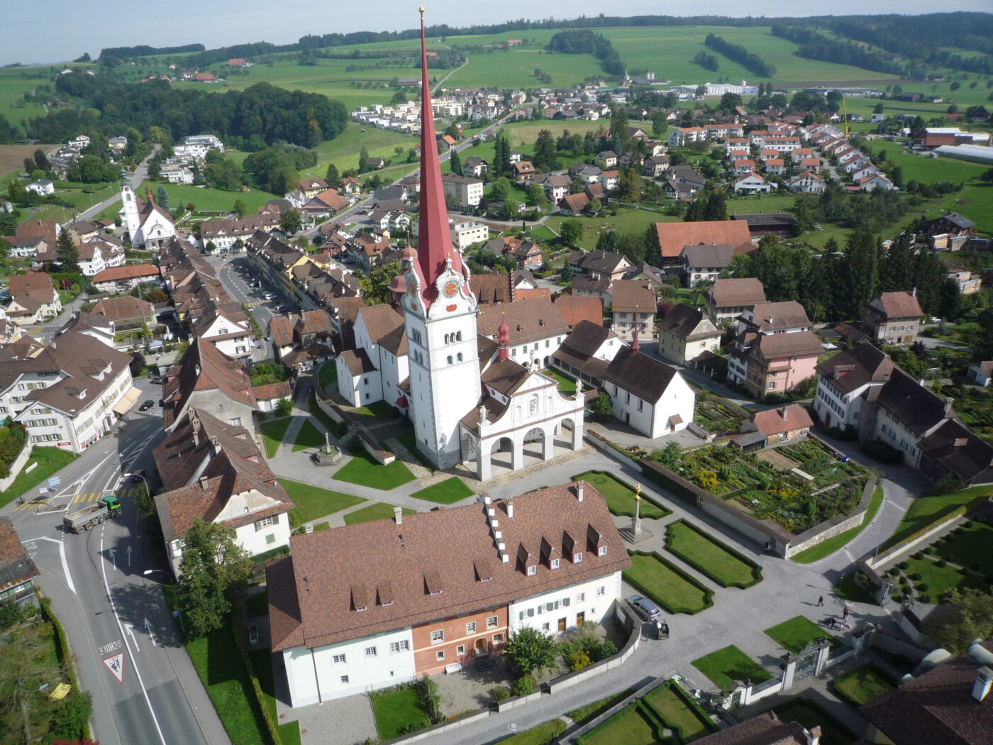 Der historische Ortskern „Fläcke“ wurde nach dem Dorfbrand von 1764 in geometrischem Grundriss wieder aufgebaut. Geschäfte für den täglichen Bedarf beleben den Ort bis hoch zum ehemaligen Bahnhof. Kirchen schließen die Häuserzeilen oben und unten ab. Der «Stift» ist eine weitläufige Anlage mit vielen alten, sehenswerten Kulturschätzen. Ein Besuch mit ausgiebigem Rundgang lohnt sich. Störend ist eigentlich nur der viele motorisierte Verkehr, der oft stockend über die Verzweigung mitten im Flecken rollt.