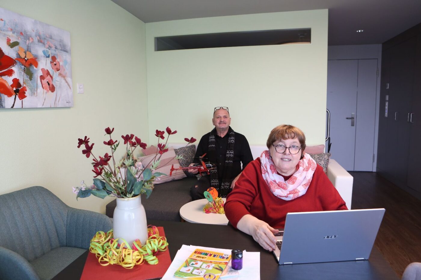 Während Hugo jetzt wieder vermehrt seine Freunde treffen kann, hat sich Erika mit ihrer kommunikativen Art bereits sehr gut eingelebt. Auch über die Pflege wissen sie nur Gutes zu berichten. «Sie sind ja alle so lieb und machen es wirklich wunderbar!» Und hier habe man seine Privatsphäre, niemand könne einfach so ins Zimmer kommen, wie das an anderen Orten manchmal der Fall sei. Es werde auch viel geboten, «und an Weihnachten haben sie extra für unsere Familie einen Raum hergerichtet, damit wir gemeinsam feiern können!» Ja, meinen beide, sie fühlen sich heimisch hier und was gibt es Schöneres als das.